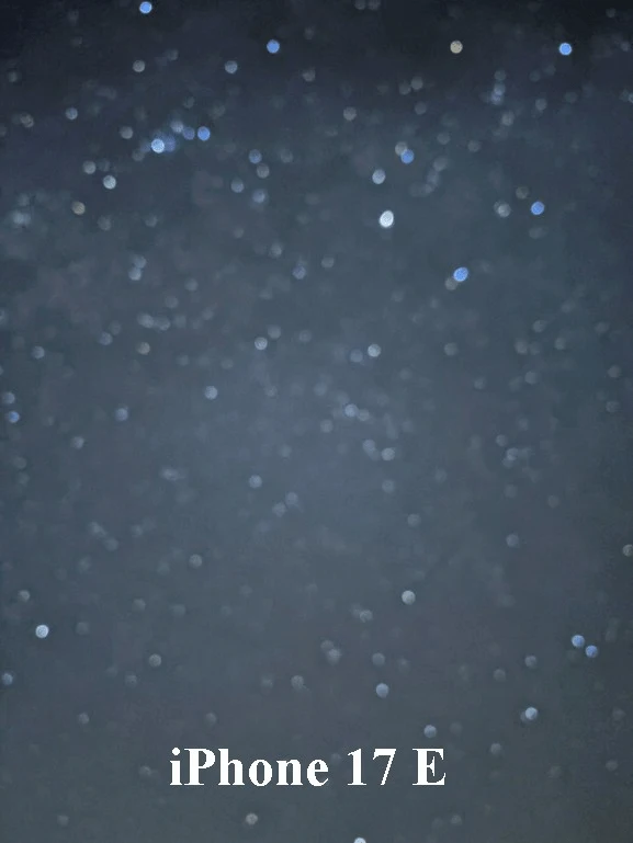Some units only produce slightly swollen stars, while others break the star shapes down much more aggressively. In this sample, the iPhone 17 E shows the most obvious breakdown of the star images.