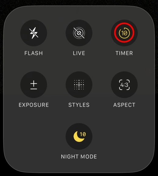 Set a 10-second timer to give yourself time to stabilize the iPhone before the shot starts. Tap the “TIMER” icon and select 10s.