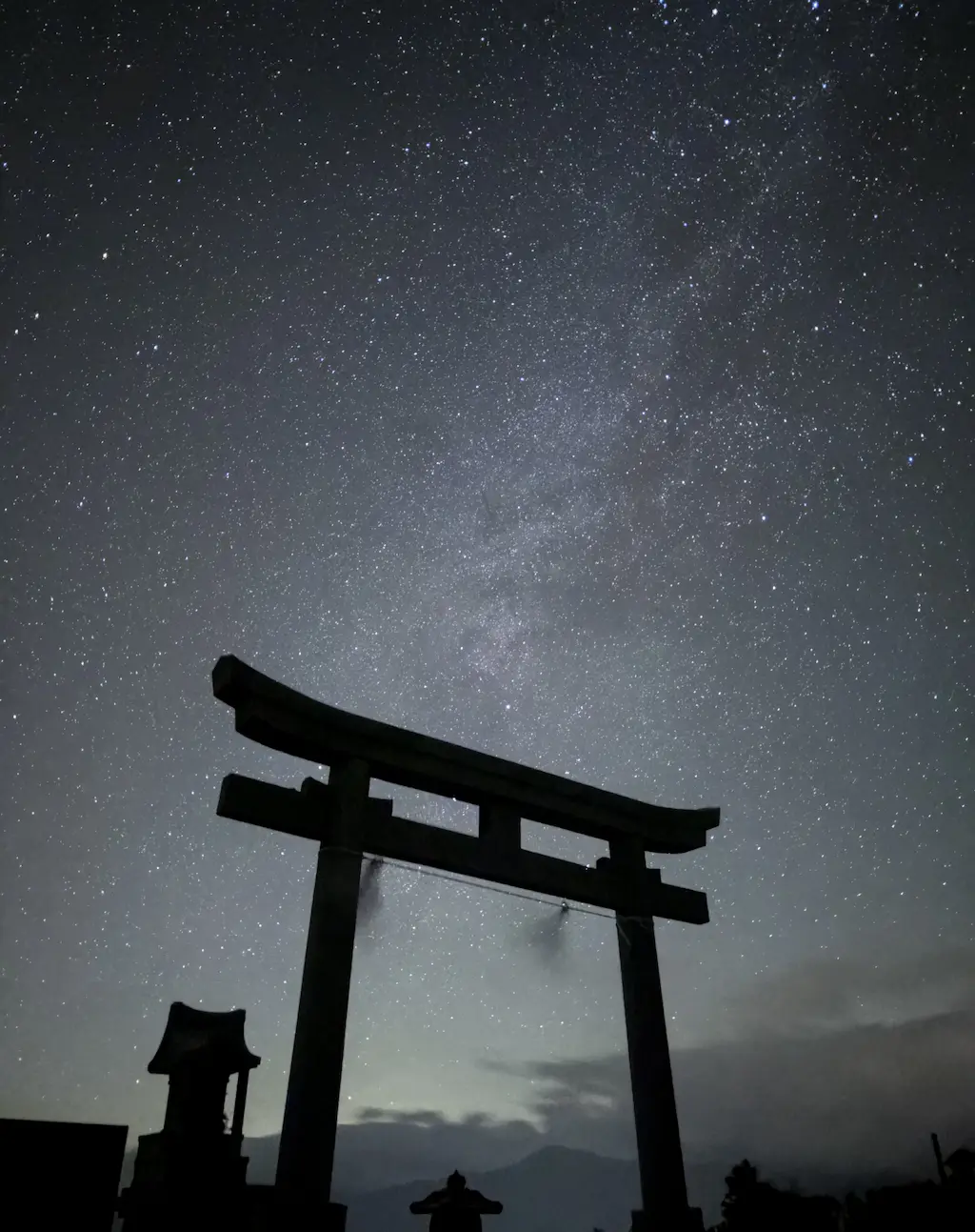 当初は、三脚に固定して鳥居を前景に入れて撮影したため、微細なブレや、前景にフォーカスが迷った可能性も考えました。そこで、ブレやフォーカスの迷いを極限まで排除するため、iPhoneを地面に直接置き、雲ひとつない快晴の空の真上を撮影してみました。