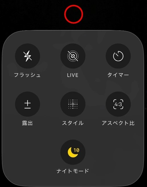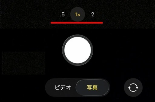 撮影する範囲(画角)は「.5」「1x」「2」から選べます。まずは基本の「1x」で試してみましょう。 次に、画面に表示されている月のマーク(ナイトモード)をタップします。